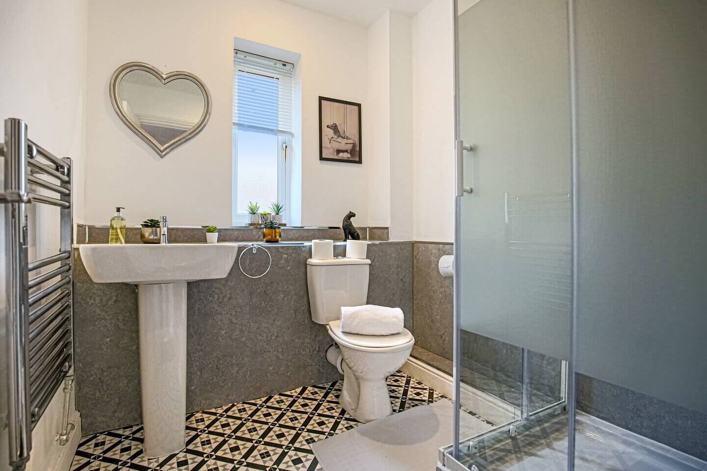 🛁 Bedroom one has a private-ensuite shower. There is an additional bathroom on the first floor and a further WC on the ground floor.